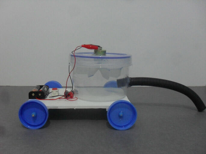 Devre anahtarını kapalı konuma getirdiğimizde pilde depolanan kimyasal enerji elektrik enerjisine dönüşür. Elektrik enerjisi iletken tel ve krokodil kablolar ile DC motora iletildiğinde, motor elektrik enerjisini kinetik enerjiye dönüştürerek pervanenin hızla dönmesini sağlar. Pervanenin dönmesi ile birlikte plastik kabın dışındaki hava kaba doğru itilir ve kabın içindeki basınç düşer. Basınç farkından dolayı oluşan emme kuvveti sayesinde çöpler havayla birlikte hareket eder ve plastik kapta depolanır. Böylece çevrede bulunan çöpler temizlenmiş olur.